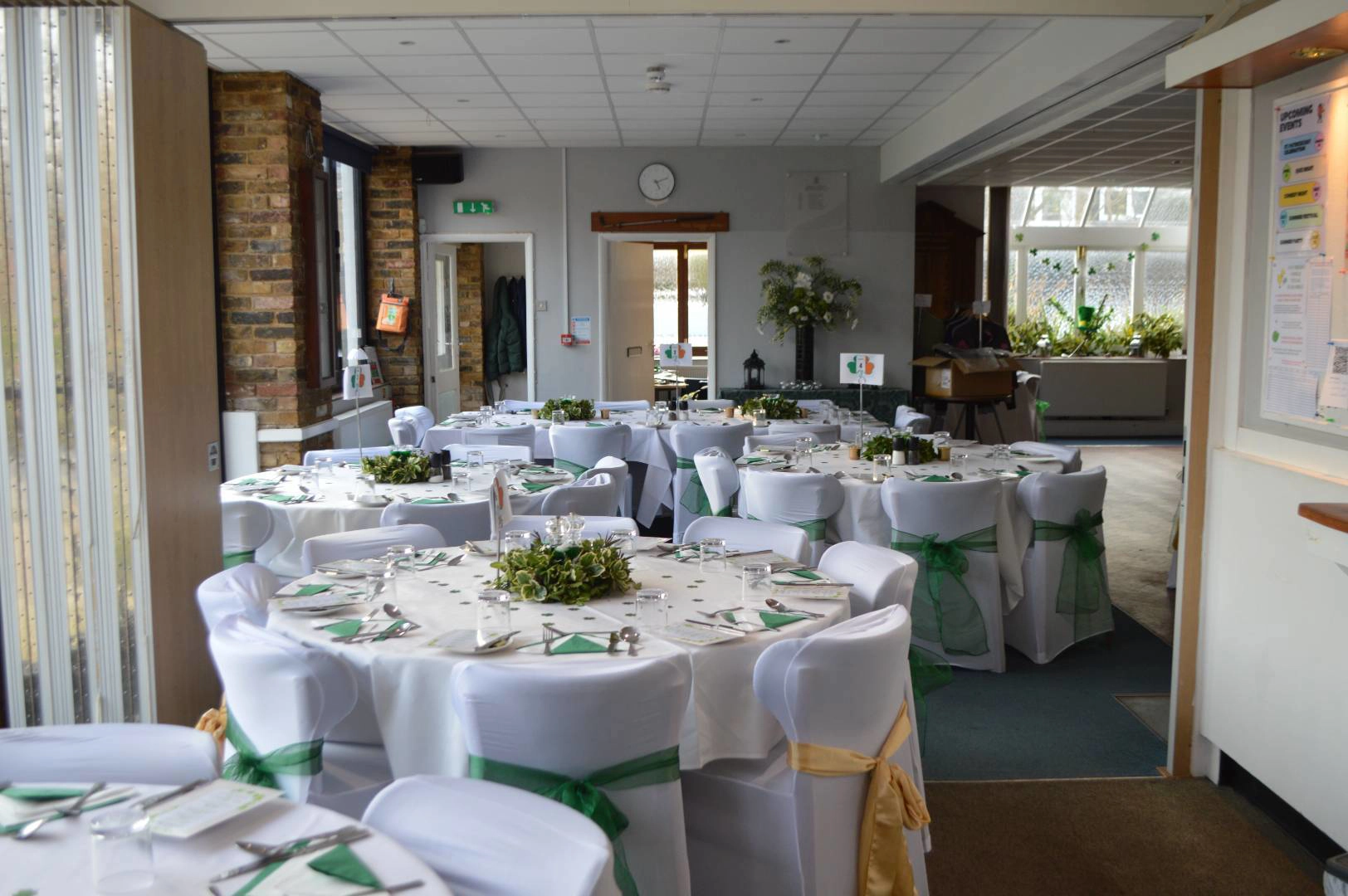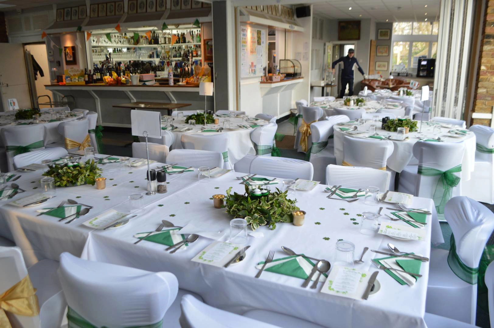 The clubhouse function room can comfortably accommodate up to 65 guests seated or 80-90 standing, depending on the style of your event. The space can be arranged to suit many occasions including corporate meetings, wakes, wedding receptions, birthday parties, proms, and other private celebrations.